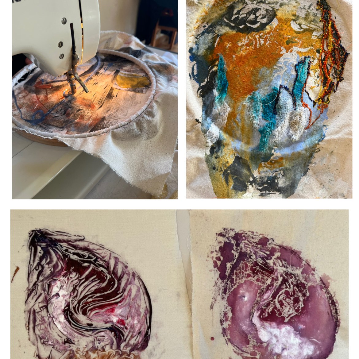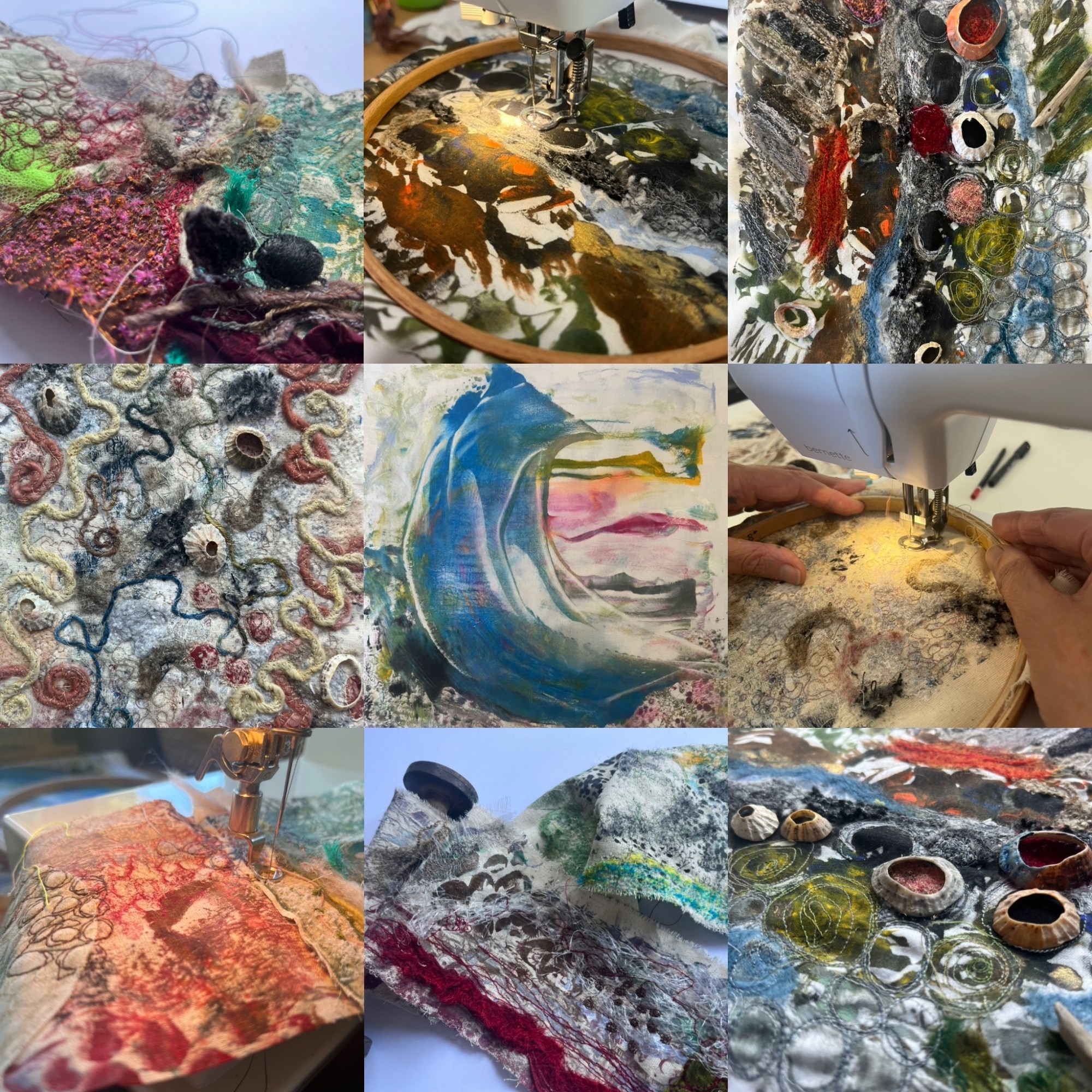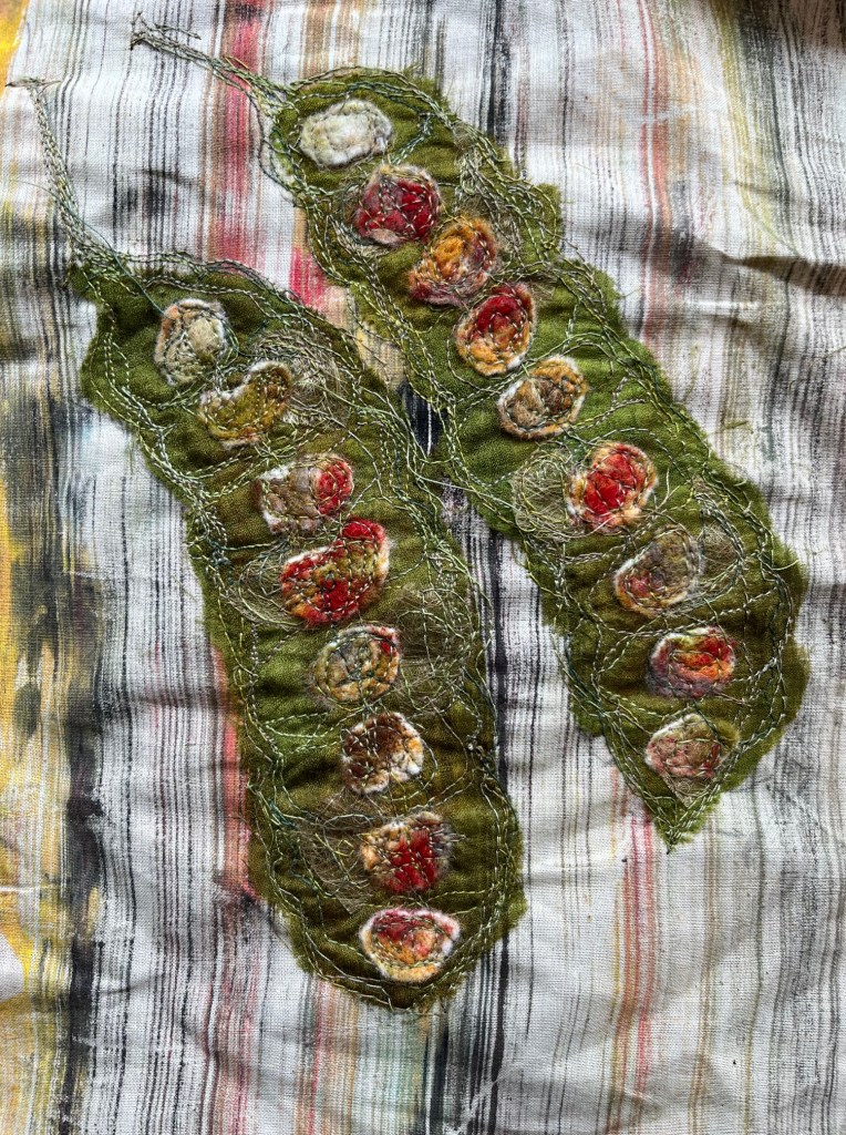 Mixed Media Embroidery – Landscape and nature. Appliqué, embellishing and embroidery. Playing with what I do best. Full day (6 hours £95 or £110 for 1-1)
