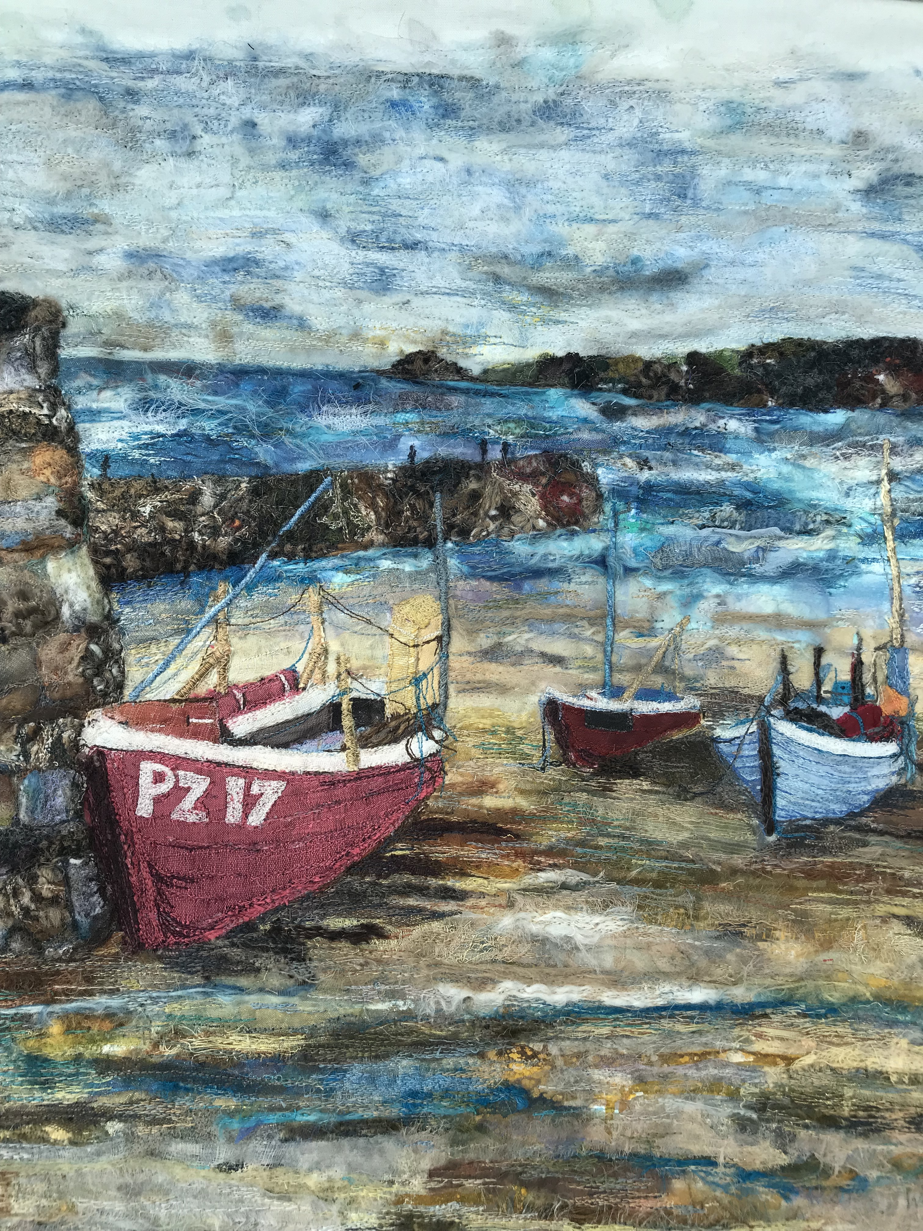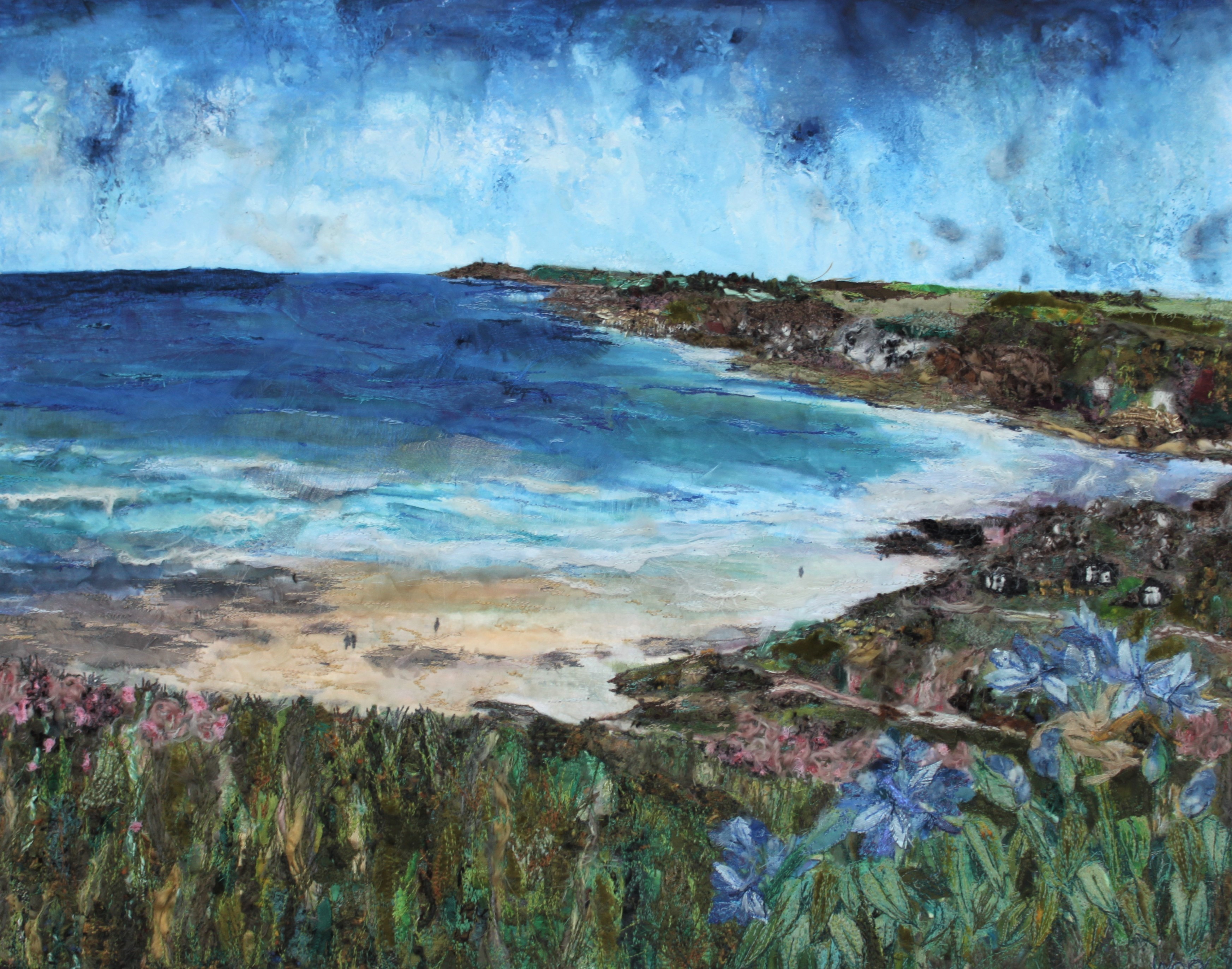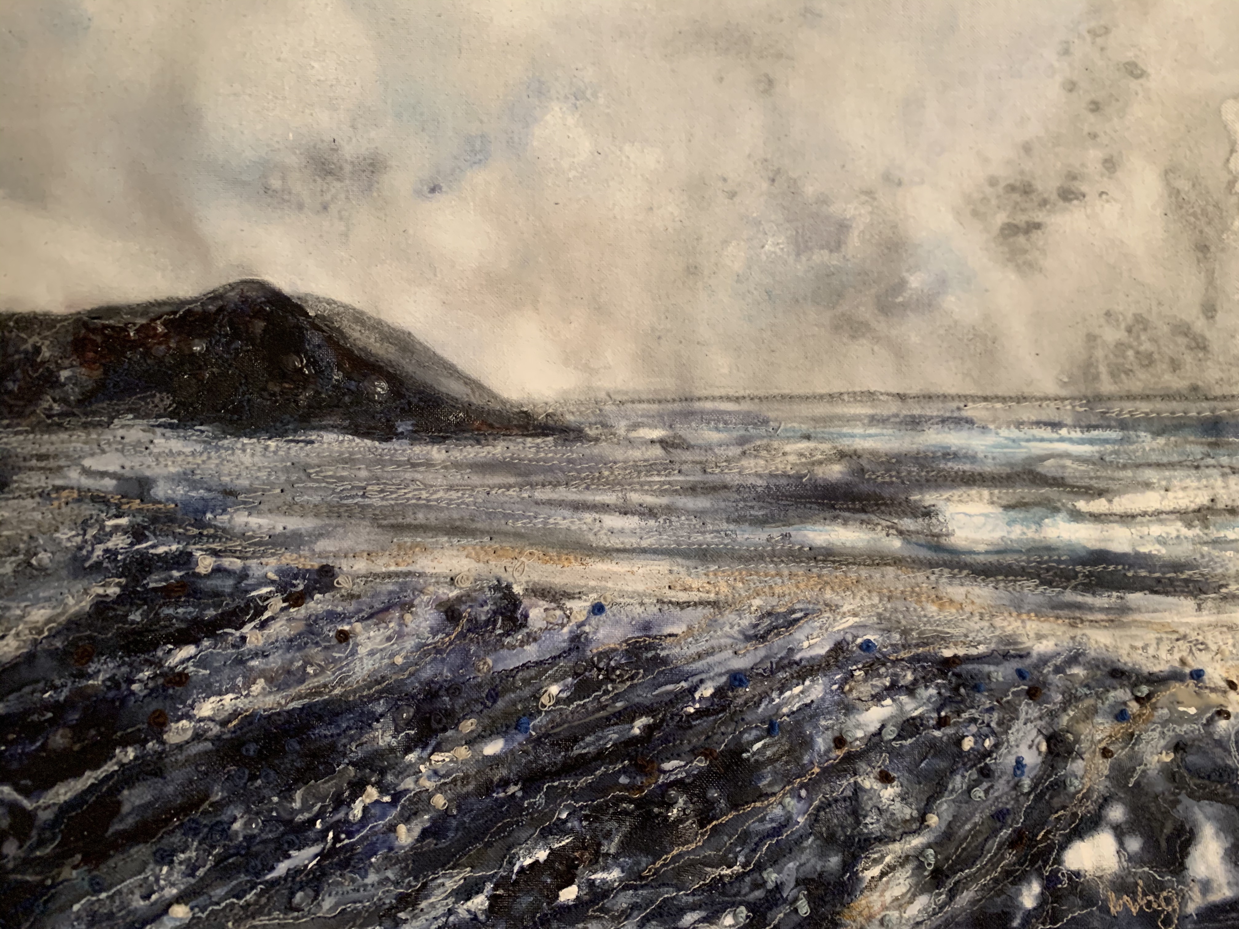 Mixed media embroidery using fabric remnants