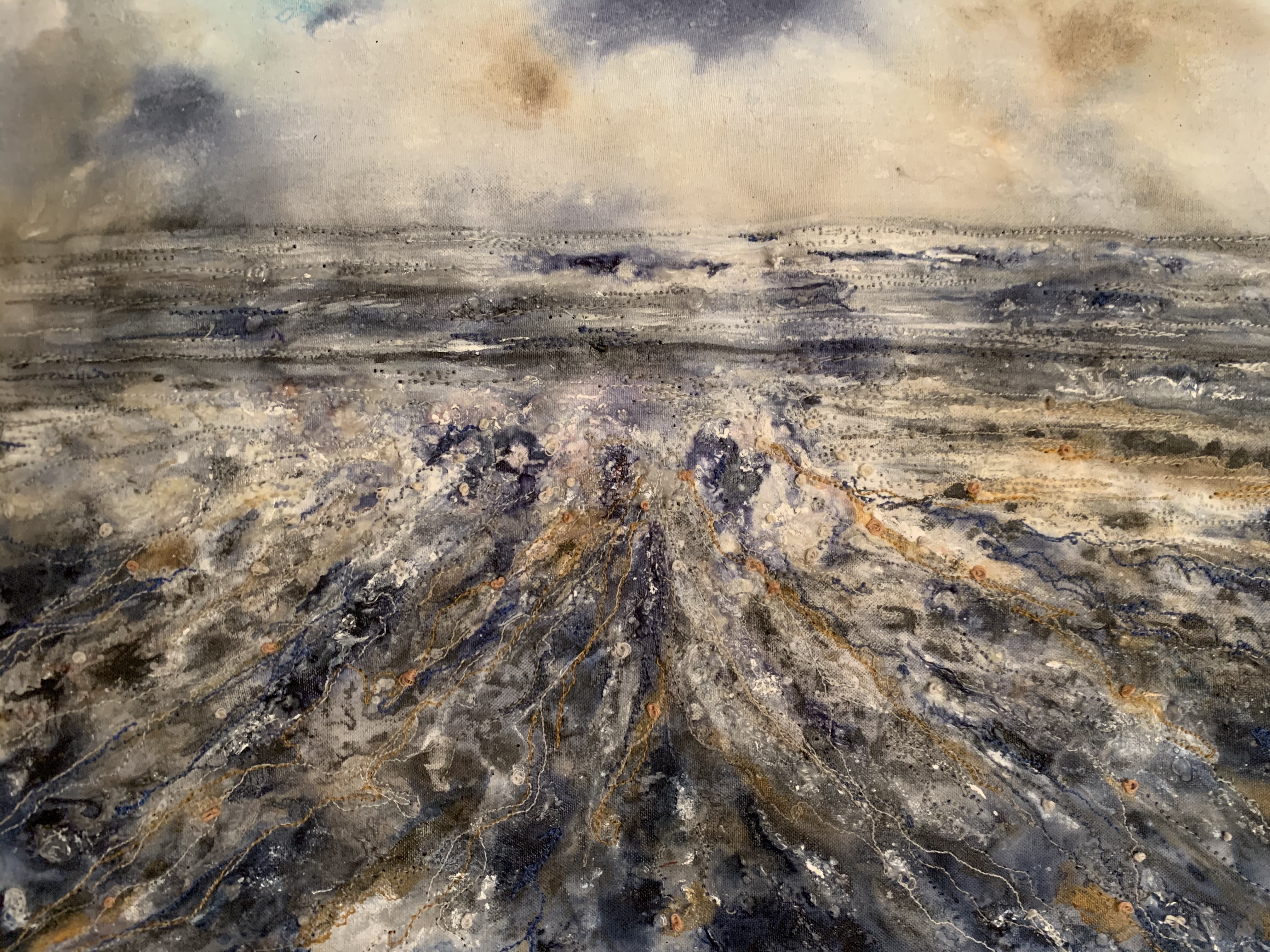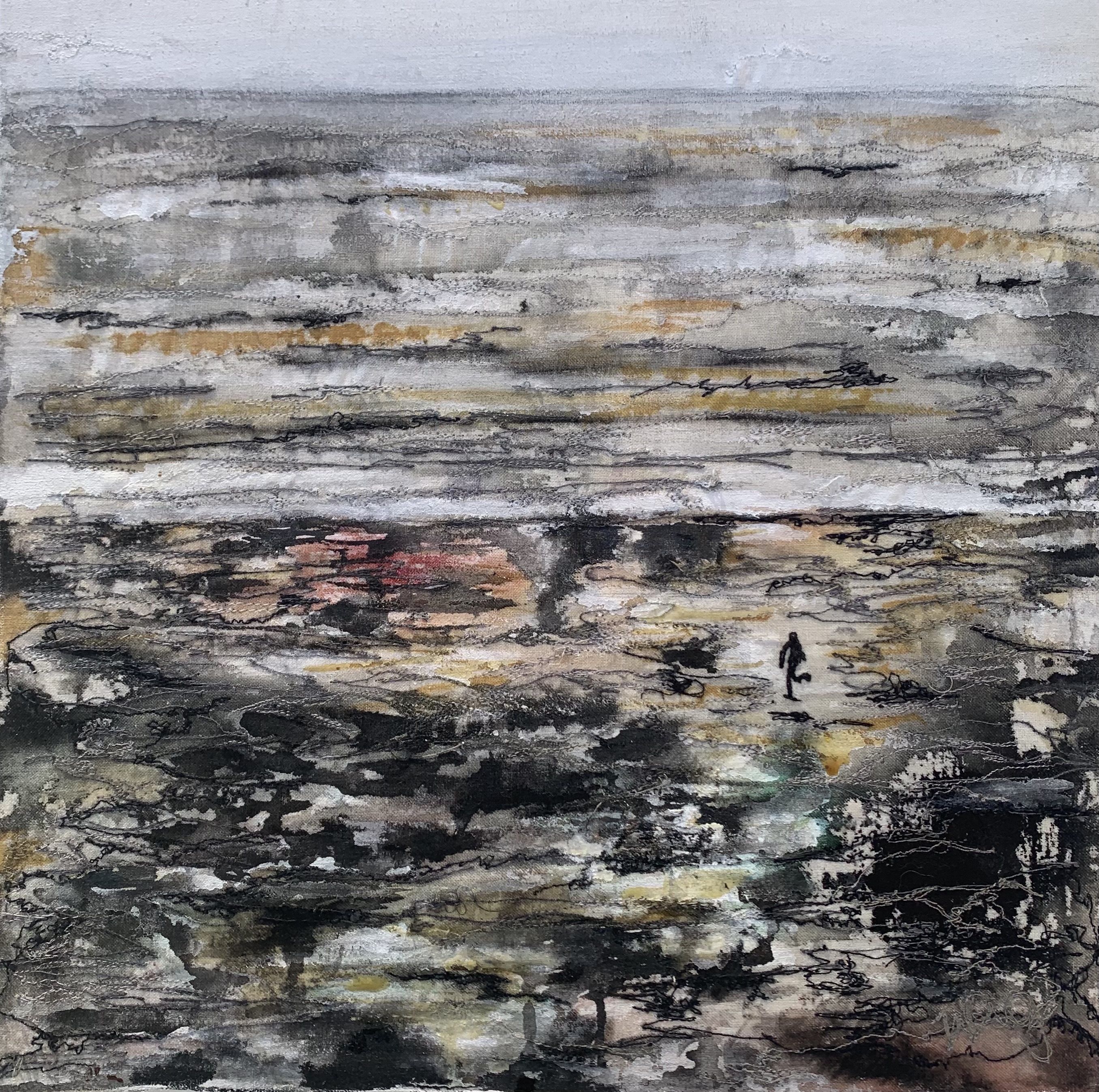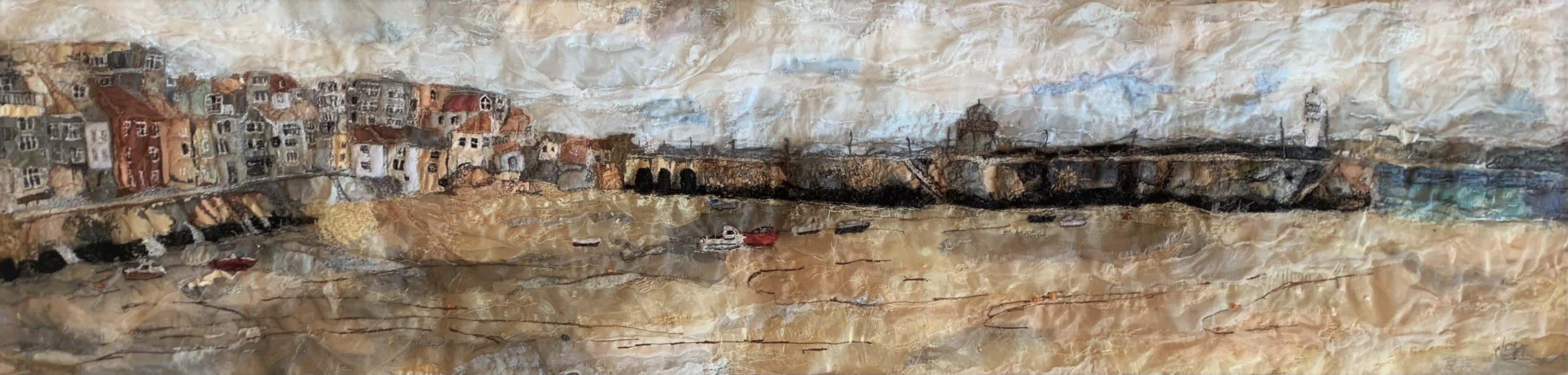 Mixed media embroidery using fabric remnants